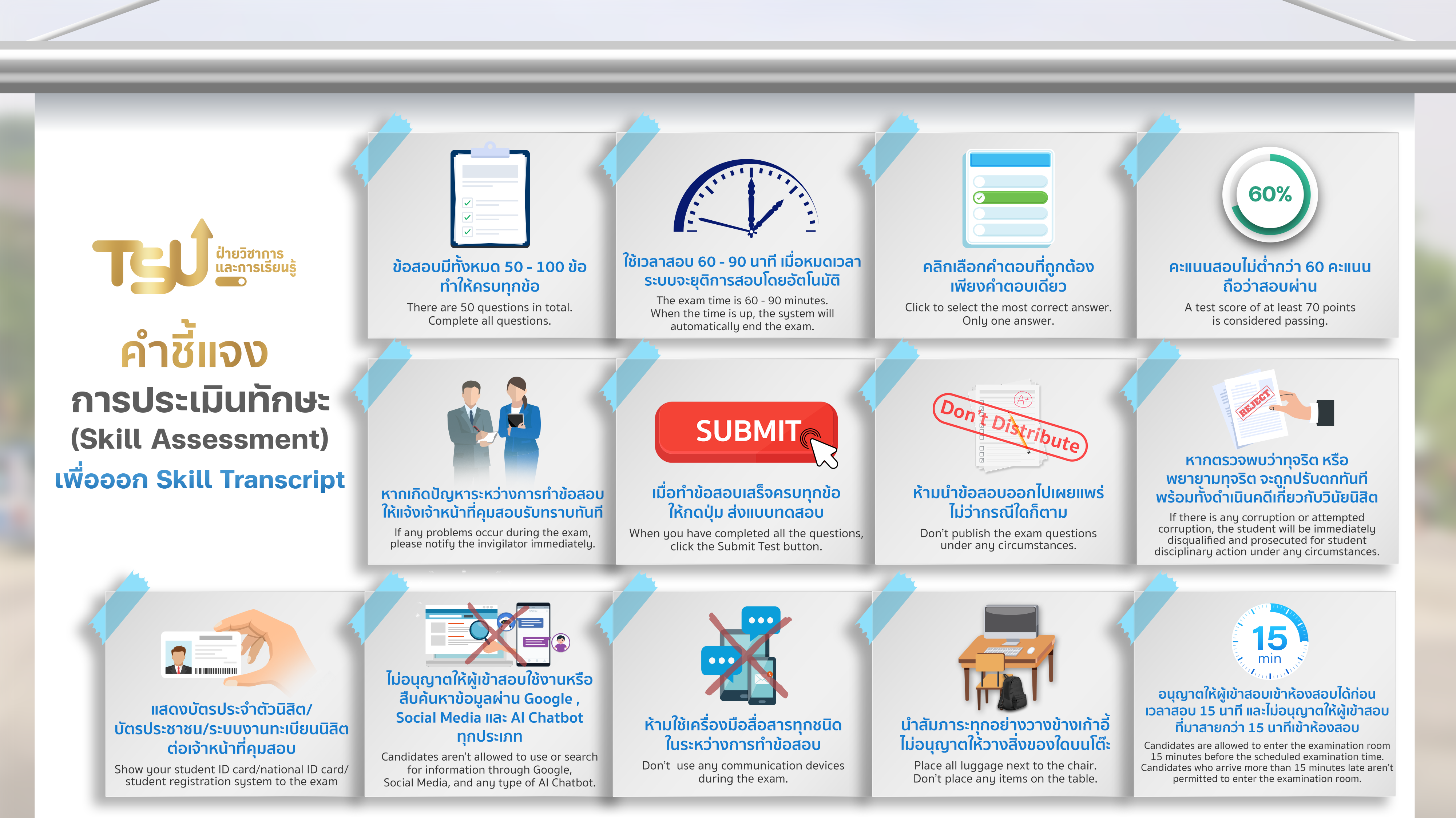 รายละเอียดสำคัญสำหรับการประเมินทุกขั้นตอนเพื่อออก Skill Transcript